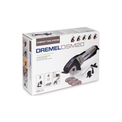 Dremel DSM20 to nowoczesna piła ręczna z bardzo dobrą widocznością linii cięcia. Dzięki mocnemu silnikowi i możliwości stosowania tarcz ściernych, piła z łatwością wykonuje precyzyjne cięcia proste, wgłębne i powierzchniowe w materiałach o grubości do 20 mm.