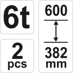 Profesjonalne podpórki pod samochód posiadają cztery łapy, regulację wysokości w zakresie 382-600 mm, udźwig 6 ton. Podstawki posiadaja dodatkowy klin zabezpieczający.