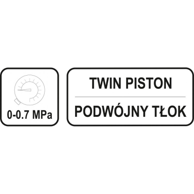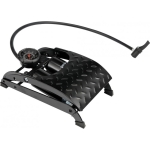 Pompka nożna dwutłokowa o solidnej konstrukcji, wykonana z tłoczonej, lakierowanej blachy stalowej o grubości 3 mm. Manometr z odczytem do 7 barów.