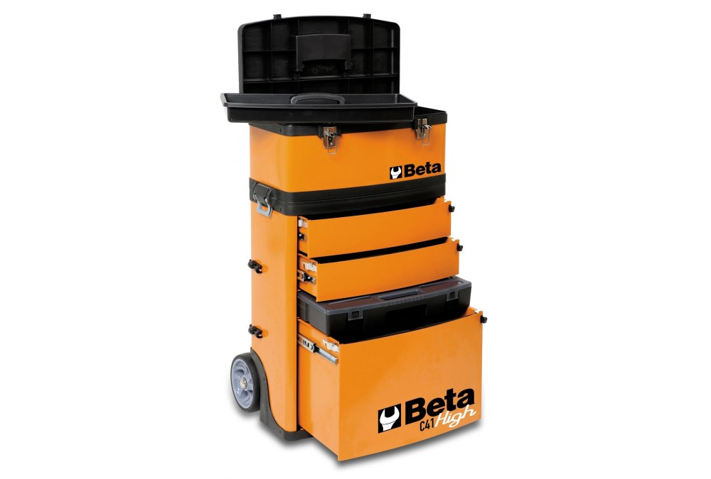 Idealne rozwiązanie dla małych i dużych warsztatów. Ścianki pojemników wykonane z blachy, pokrywy z tworzywa sztucznego, co daje wyjątkową wytrzymałość połączoną z obniżoną wagą (jedynie 21 kg). Wózek składa się z 2 łączonych ze sobą modółów, górny (skrzynka narzędziowa, model: C41MS), dolny (2 szuflady o wysokości 95 mm, 1 wyjmowany pojemnik z tworzywa, model: C41HCE o wysokości 66 mm na drobne elementy i 1 szuflada o wysokości 295 mm). Górna skrzynka narzędziowa zawiera wyjmowaną tacę na drobne elementy. Szuflady z prowadnicami kulkowymi, dwustronnie ryglowane, dolna szuflada z podwójnymi prowadnicami kulkowymi.